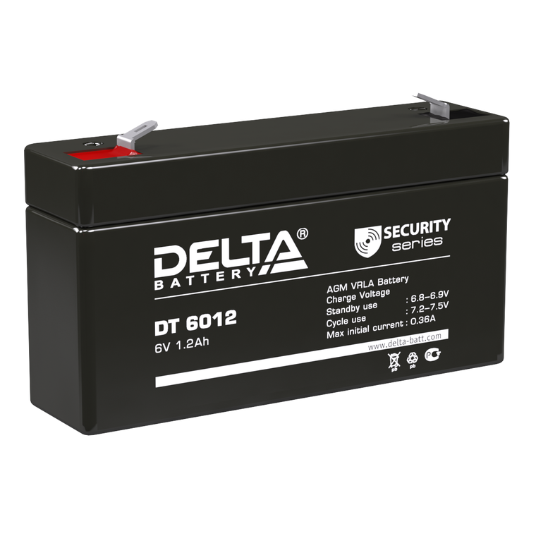 Батарея DELTA Battery DT 6012. Напряжение питания - 6 В. Ёмкость аккумулятора - 1.2 Ач.