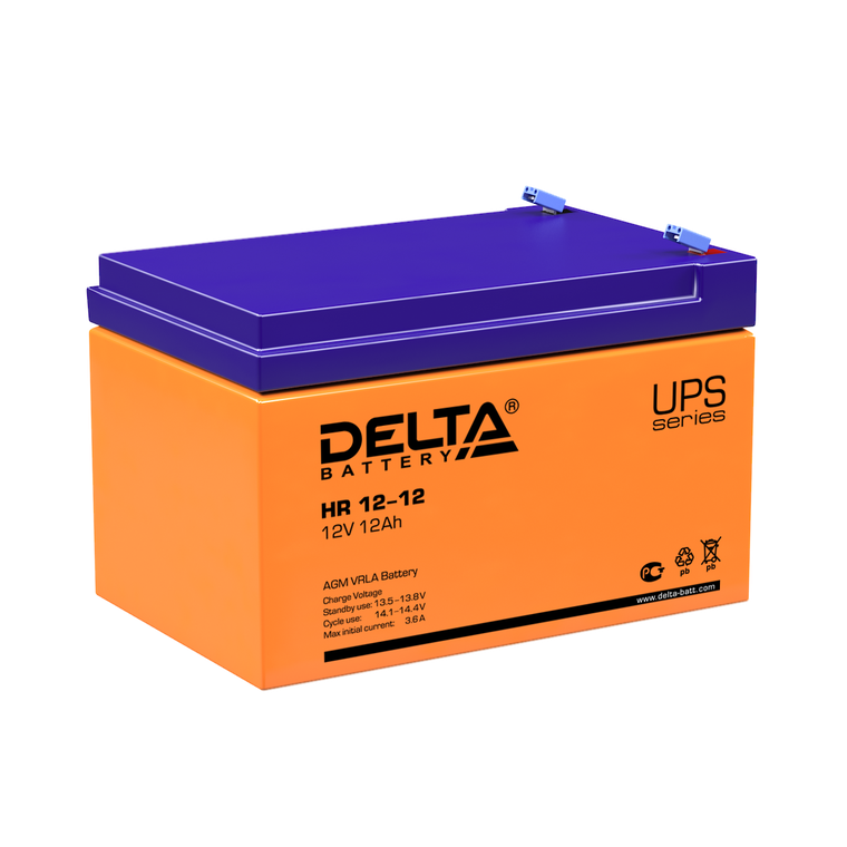 Батарея DELTA Battery HR 12-12. Напряжение питания - 12 В. Ёмкость аккумулятора - 12 Ач.