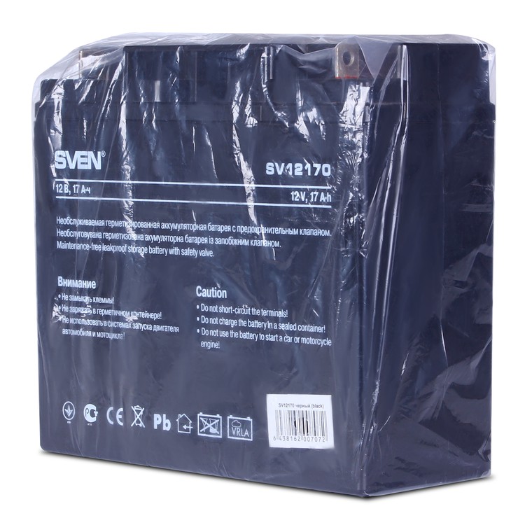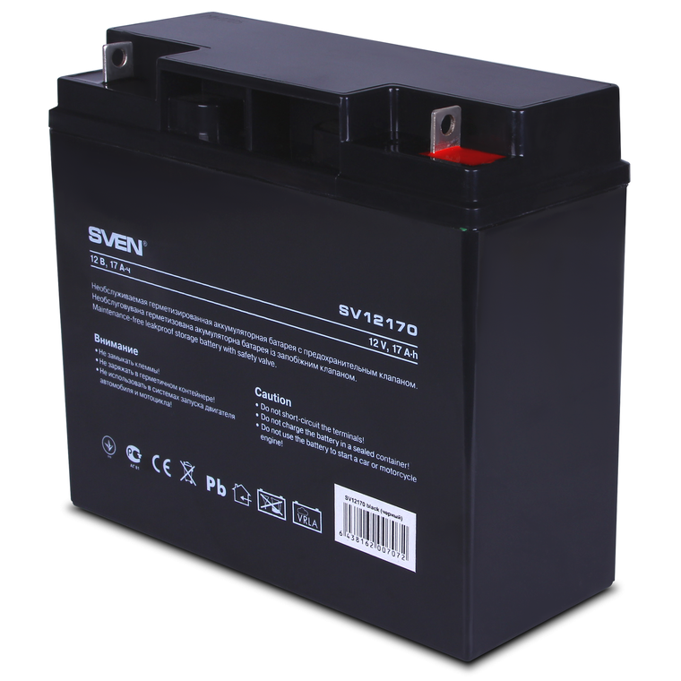 Батарея Sven SV12170. Напряжение питания - 12 В. Ёмкость аккумулятора - 17 Ач.