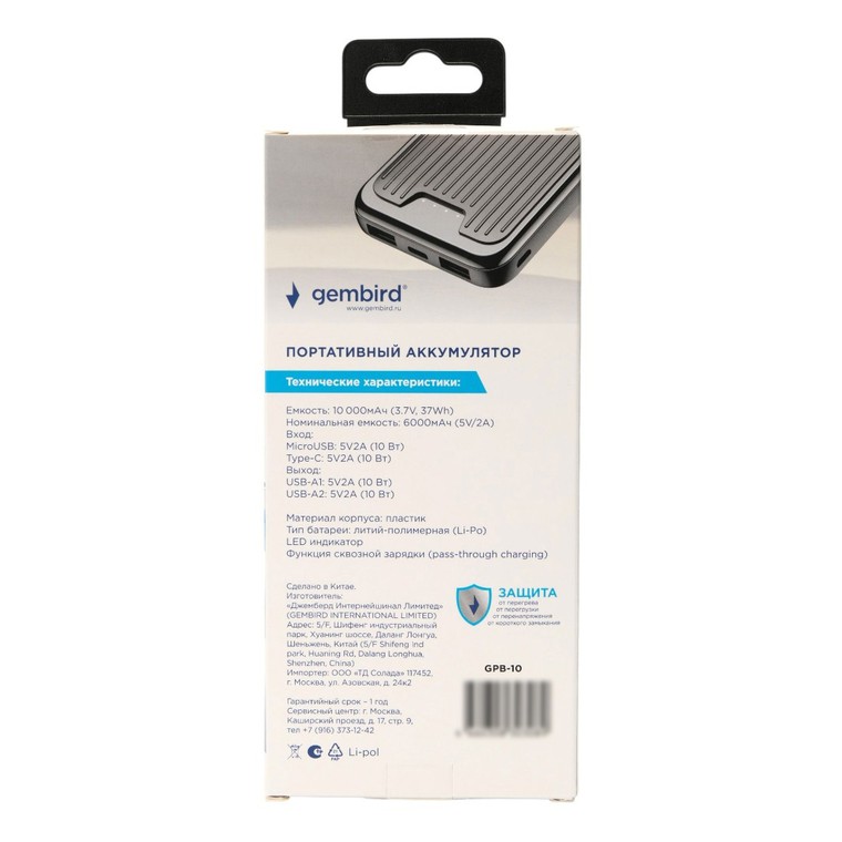 Устройство чрезвычайно просто по конструкции, надёжно в работе. Емкость аккумулятора GPB-10 составляет 10000 мАч. Пользоваться представленным гаджетом очень просто. Вам достаточно зарядить внешний аккумулятор GPB-10 и взять его с собой в дорогу.