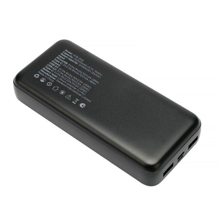 Устройство чрезвычайно просто по конструкции, надёжно в работе. Емкость аккумулятора GPB-20Q составляет 20000 мАч. Пользоваться представленным гаджетом очень просто. Вам достаточно зарядить внешний аккумулятор GPB-20Q и взять его с собой в дорогу.