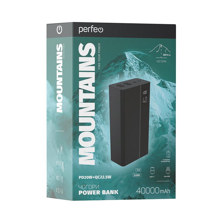 Устройство чрезвычайно просто по конструкции, надёжно в работе. Емкость аккумулятора MOUNTAINS составляет 40000 мАч. Пользоваться представленным гаджетом очень просто. Вам достаточно зарядить внешний аккумулятор MOUNTAINS и взять его с собой в дорогу.