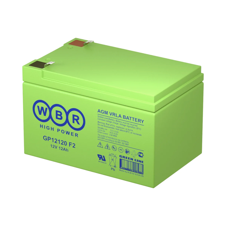 Батарея WBR GP12120. Напряжение питания - 12 В. Ёмкость аккумулятора - 12 Ач.