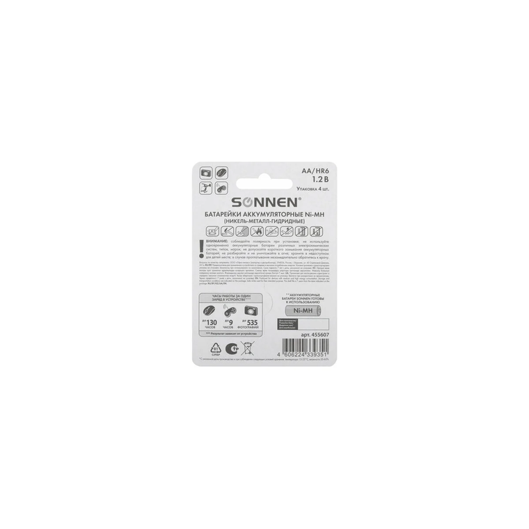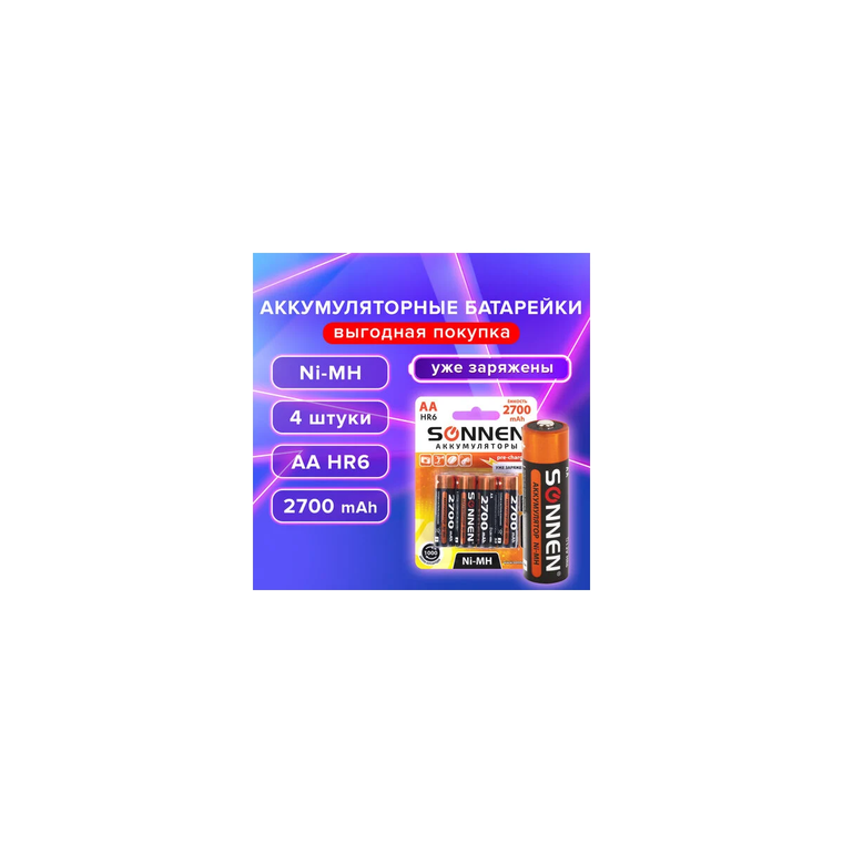 Аккумулятор Sonnen (455607) станет ценным приобретением для любого владельца портативной техники работающей от элементов питания формата AA. Ёмкость упаковки составляет 4 штук. Использование аккумуляторов позволит вам снизить затраты на эксплуатацию вашего плеера, джойстика, фонарика или другого портативного прибора, ведь в отличие от обычных батареек аккумуляторы можно заряжать не одну сотню раз!