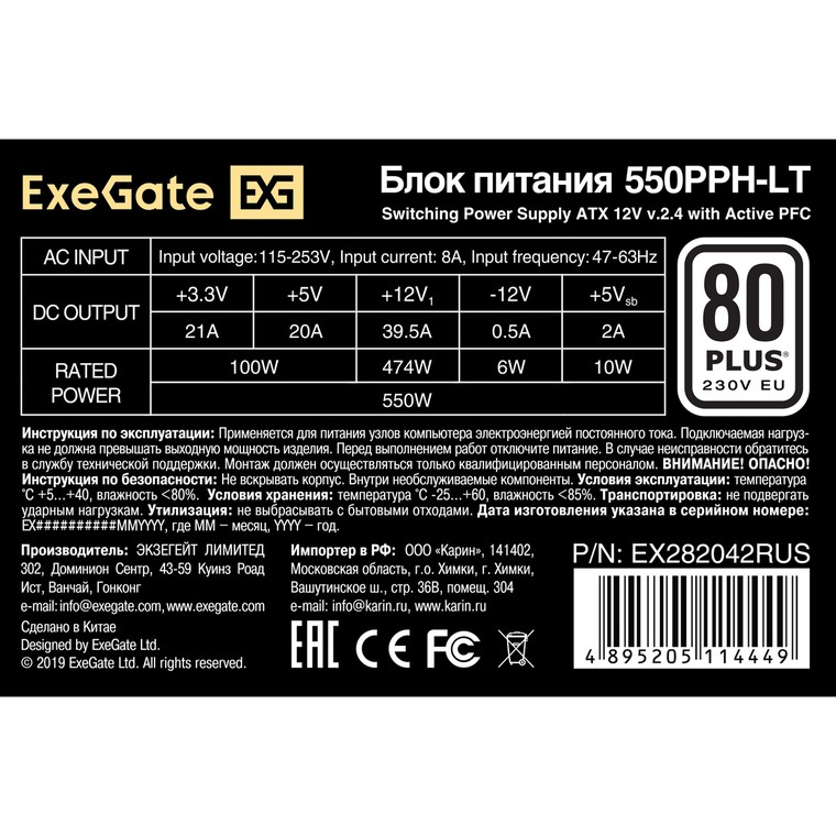 ExeGate 550PPH-LT-OEM – качественная и надежная модель источника электропитания, предназначенного для снабжения электрической энергией всех узлов компьютера.