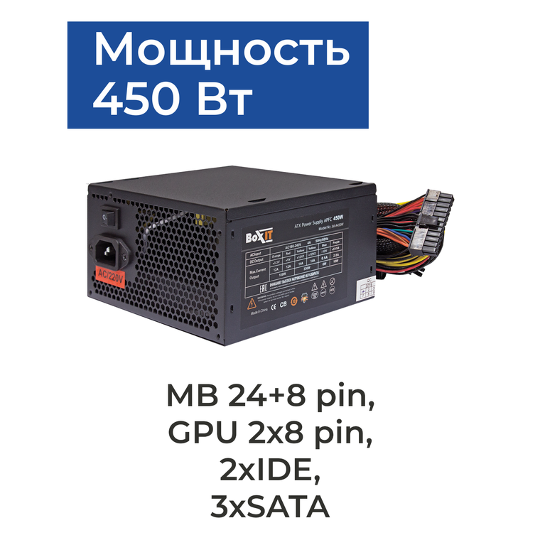 BoxIT JM-A450w – качественная и надежная модель источника электропитания, предназначенного для снабжения электрической энергией всех узлов компьютера.