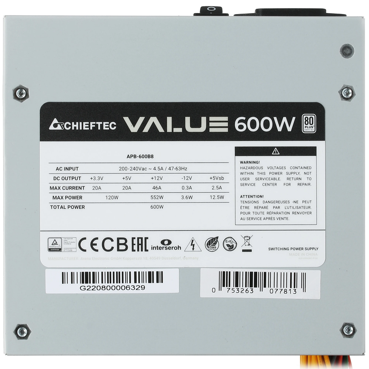 Chieftec Value APB-600B8 – качественная и надежная модель источника электропитания, предназначенного для снабжения электрической энергией всех узлов компьютера.