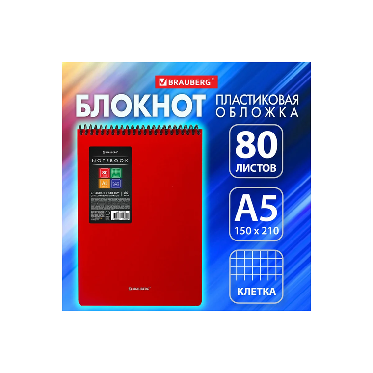 Блокнот оснащён обложкой Пластик и изготовлен из качественной бумаги плотностью 70 гр/метр2. В блокноте 80 листов форматом А5. Листы блокнотов могут быть чистыми или иметь разметку для упрощения написания текстовой информации. Цвет обложки блокнота - красный.