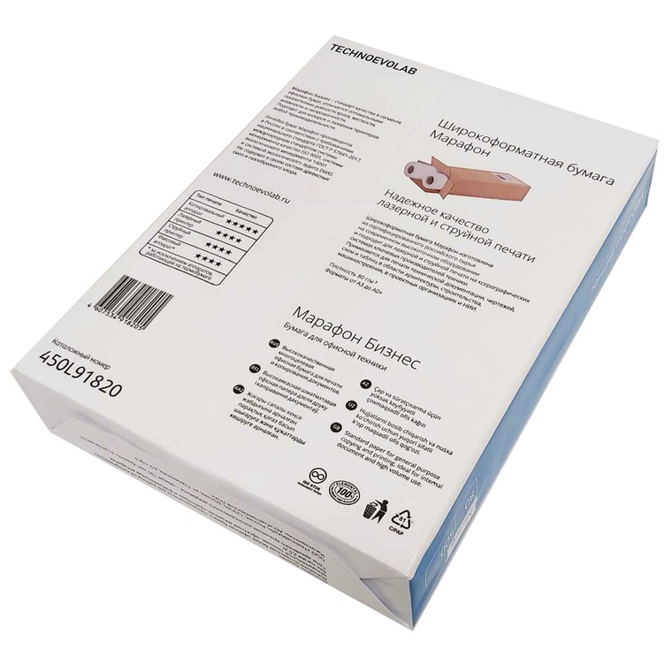 Офисная бумага Марафон плотностью 80 мкм упакована в упаковку по 500 листов, что позволяет снизить себестоимость печати. Офисная бумага Марафон это отличное решение для вашего офиса. Купить качественную бумагу для офиса Марафон можно всего в пару кликов. Печатайте долговечные документы в необходимых Вам объёмах.