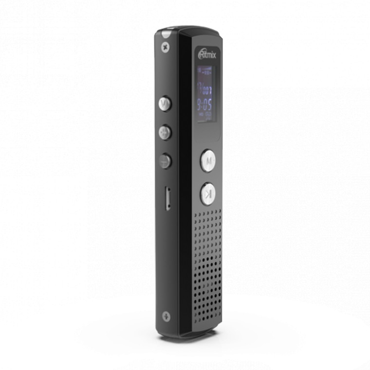 Прибор поддерживает наиболее распространённые форматы записи, что значительно упрощает его использование. Для прослушивания готовых звуковых файлов в диктофоне Ritmix RR-120 предусмотрен разъём для подключения наушников.
