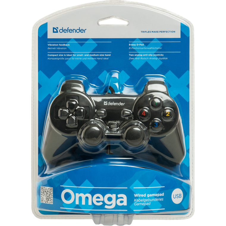 Электропитание геймпада для ПК осуществляется от от USB-порта. Корпус представленного игрового аксессуара изготовлен из прочных материалов и окрашен в черный. Благодаря прочной конструкции геймпад не боится механических повреждений и сохранит своё работоспособное состояние в течении длительного времени. Купить Геймпад Defender Omega можно всего в пару кликов по доступной цене. Для этого просто достаточно добавить товар в корзину и сделать заказ.