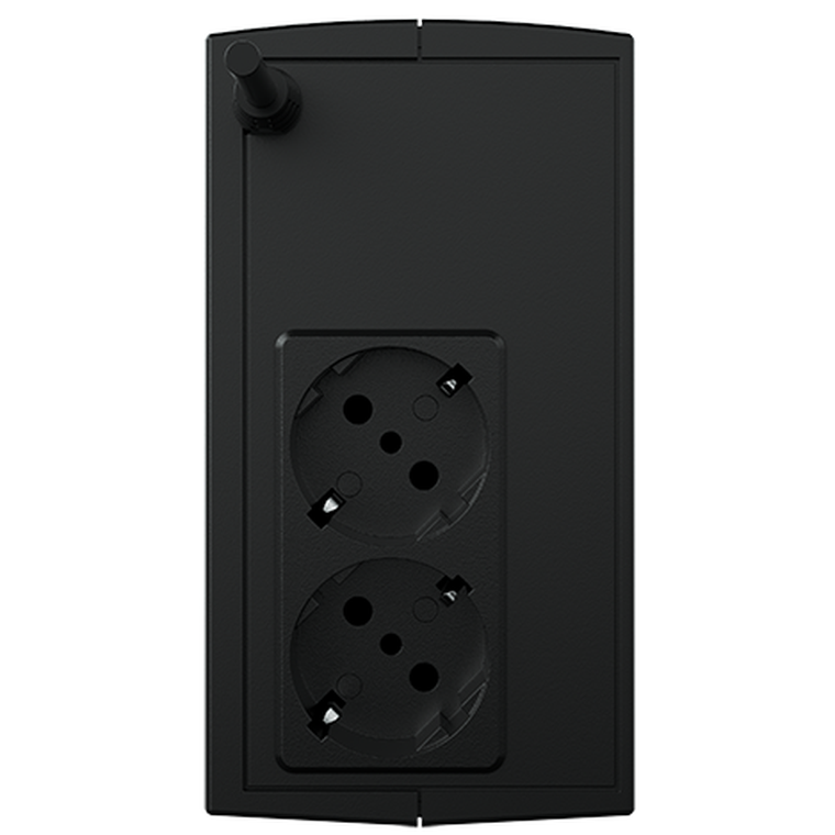 Цена ИБП указана на данной странице. Для подключения потребителей в конструкции источника бесперебойного питания предусмотрено 2 выходных розетки. Мощность ИБП составляет 425 Вт.