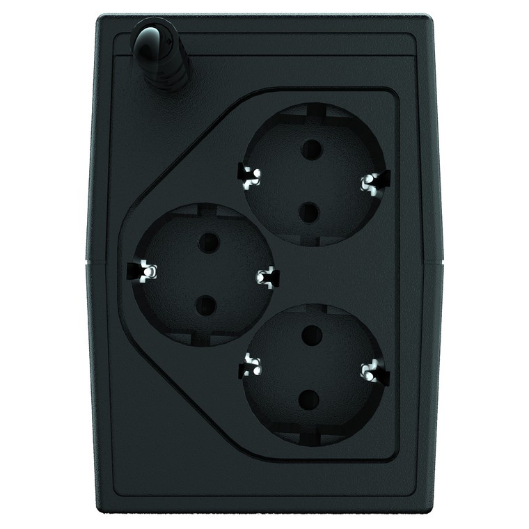 Цена ИБП указана на данной странице. Для подключения потребителей в конструкции источника бесперебойного питания предусмотрено 3 выходных розетки. Мощность ИБП составляет 360 Вт.