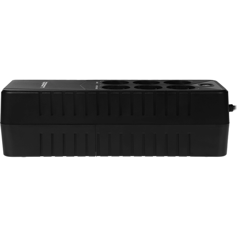 Цена ИБП указана на данной странице. Для подключения потребителей в конструкции источника бесперебойного питания предусмотрено 6 выходных розетки. Мощность ИБП составляет 300 Вт.