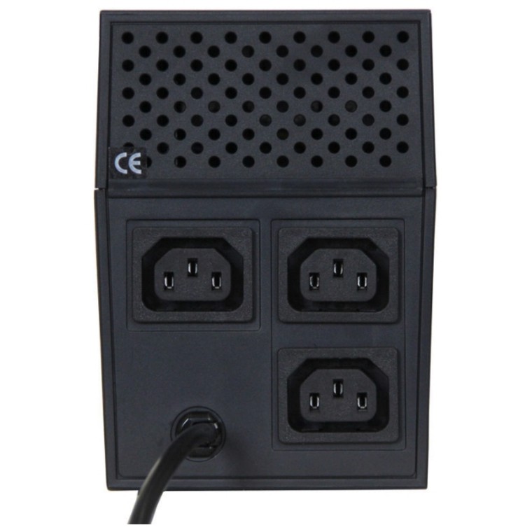 Цена ИБП указана на данной странице. Для подключения потребителей в конструкции источника бесперебойного питания предусмотрено 3 выходных розетки. Мощность ИБП составляет 600 Вт.