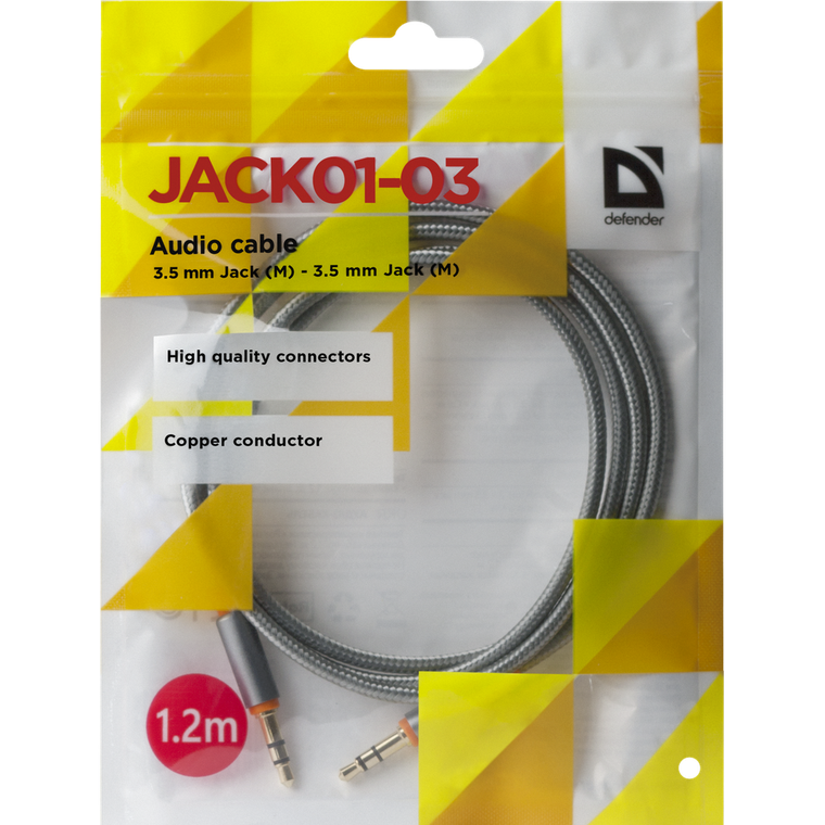 Наличие на кабеле Defender прочной оплётки надёжно защищает его от повреждений, воздействия влаги и пыли. Модель поставляется в упаковке типа Blister. Концы кабеля оснащены разъёмами 3.5 Jack (m) и 3.5 Jack (m), что делает его совместимым с большинством моделей оборудования.