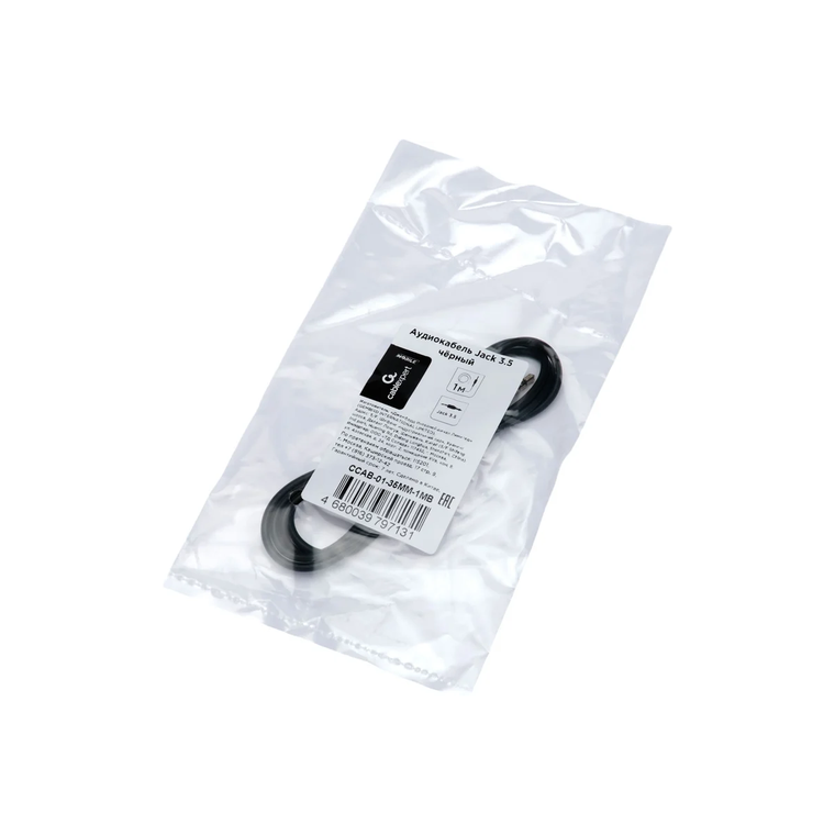 Кабель аудио Cablexpert CCAB-01-35MM-1MB, Jack 3.5(M)/Jack 3.5(M), Mobile, 1м, черный, пакет