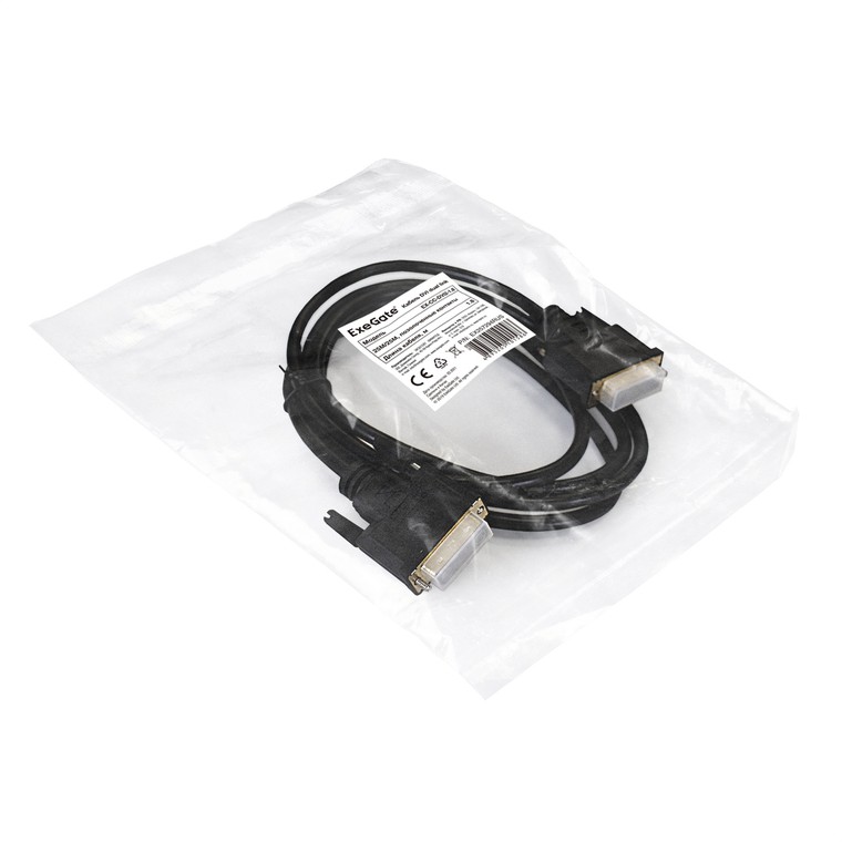 От механических повреждений и воздействия влаги кабель защищён прочной оплёткой. Длина кабеля составляет 1.8 метра. Поставляется в упаковке типа - пакет. Для коммутации с электронными приборами концы кабеля оснащены разъёмами DVI-D и DVI-D.