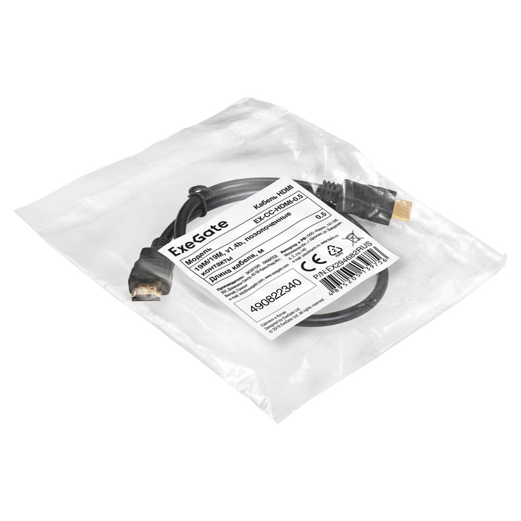 От механических повреждений и воздействия влаги кабель защищён прочной оплёткой. Длина кабеля составляет 0.5 метра. Поставляется в упаковке типа - пакет. Для коммутации с электронными приборами концы кабеля оснащены разъёмами HDMI (m) и HDMI (m).