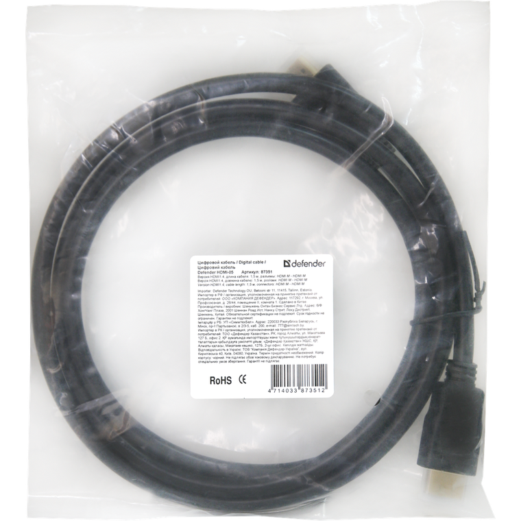 Кабель Defender отлично передаёт видео сигнал без каких либо искажений. Купить кабель Вы можете всего в пару кликов по доступной цене. Для этого просто достаточно добавить товар в корзину и сделать заказ. Этот кабель обязательно нужно иметь в наличии, ведь он позволит передавать видео сигналы без потери скорости и качества.