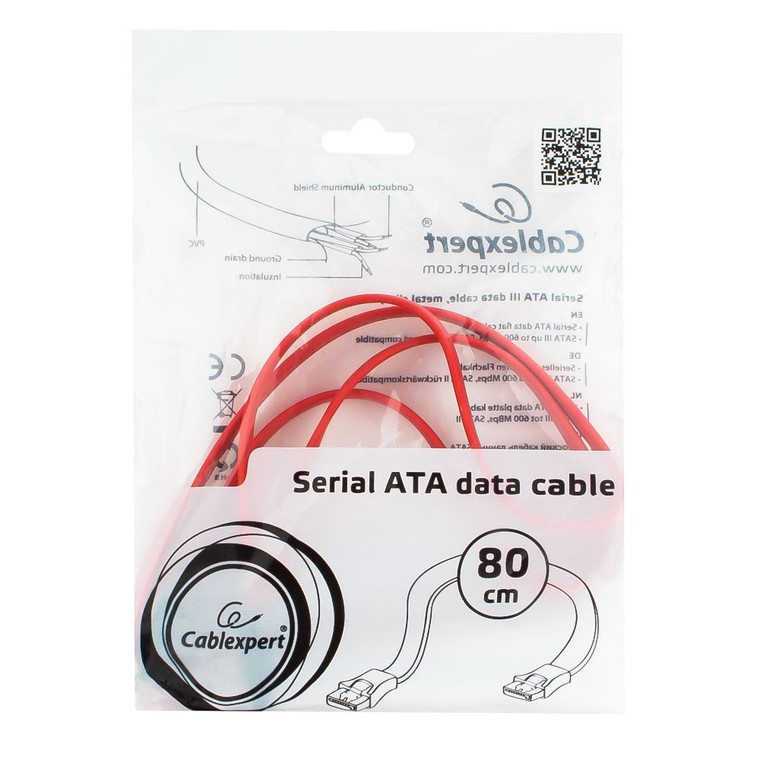 Кабель интерфейсный Cablexpert SATA3, 80см, 7pin/7pin, защелка, пакет (CC-SATAM-DATA-0.8M)