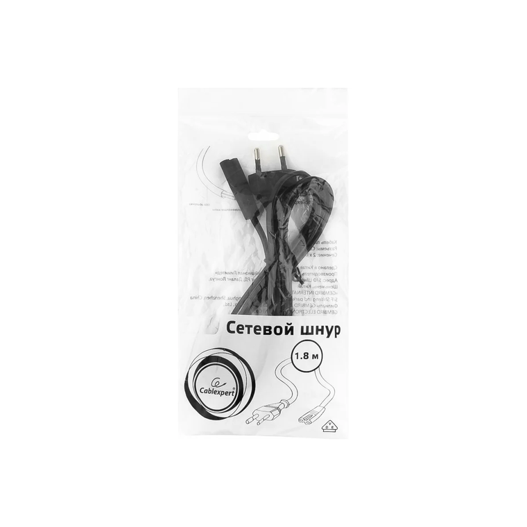 Кабель питания Cablexpert (PC-184-VDE-1.8M), 1.8 м., IEC-320-C7/IEC-320-C7, черный. Модель полностью безопасна в использовании.