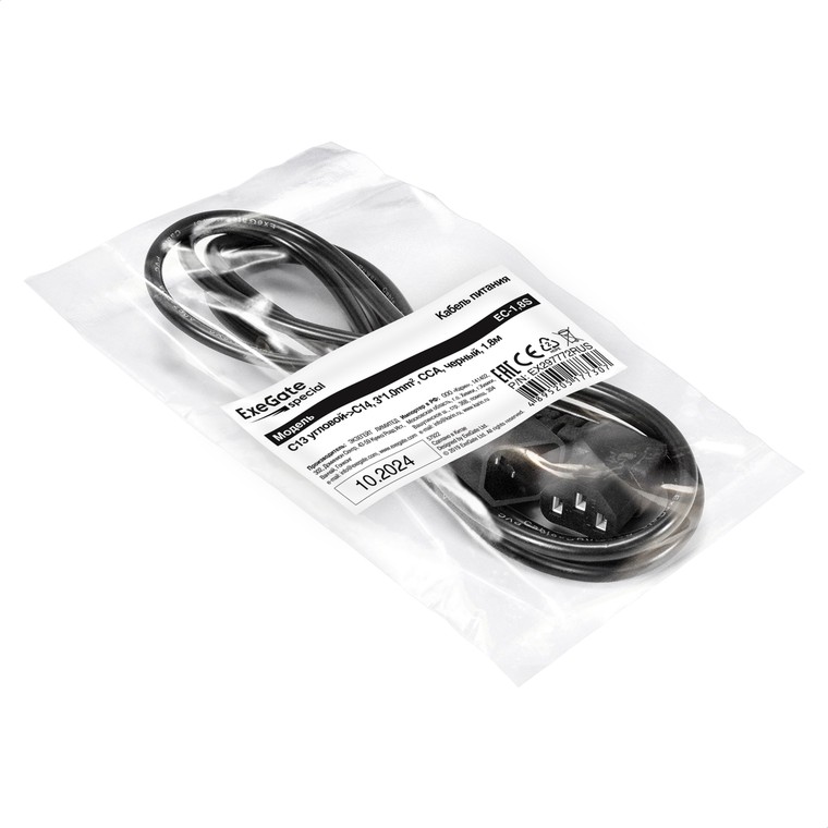 Кабель питания ExeGate (EX297772RUS), 1.8 м., IEC 320 C13/IEC 320 C13, черный. Модель полностью безопасна в использовании.