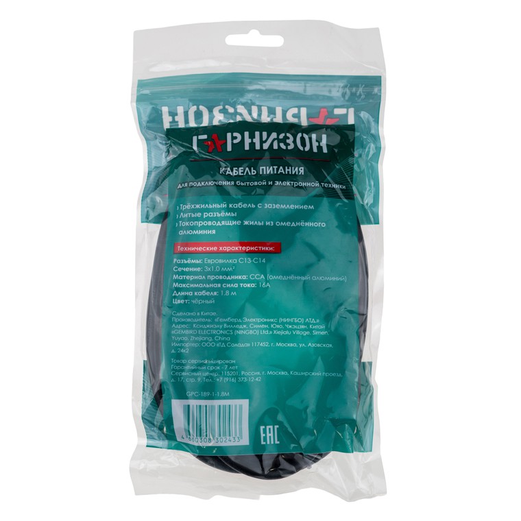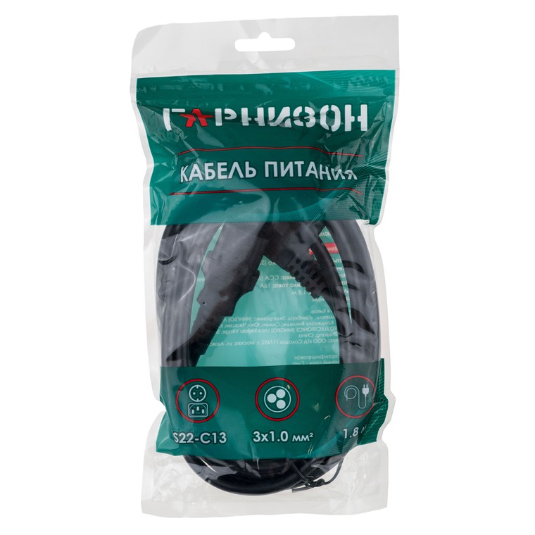 Кабель питания Гарнизон (GPC-186-1-1.8M), 1.8 м., EU-Schuko/EU-Schuko, черный. Модель полностью безопасна в использовании.