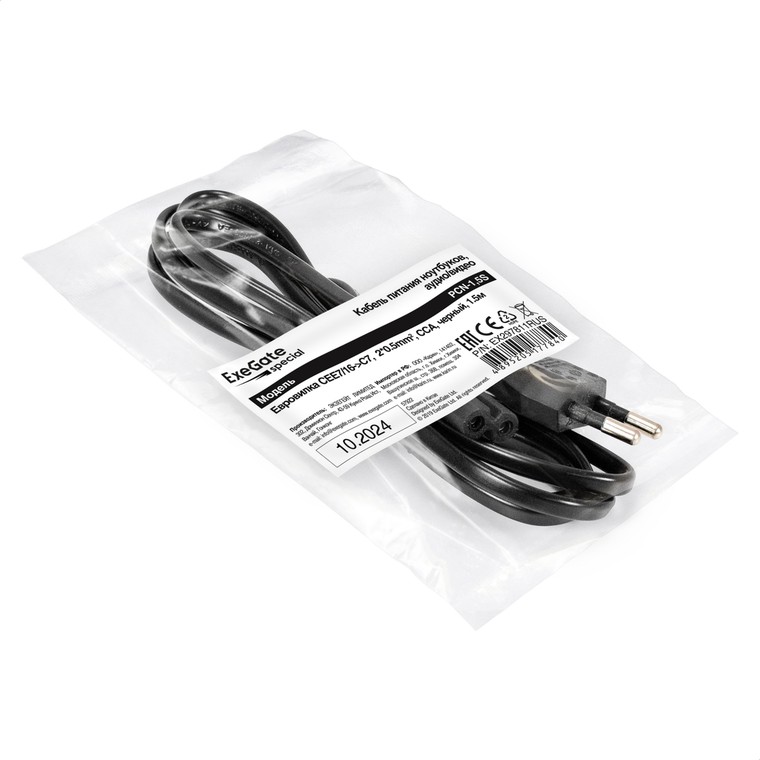 Кабель питания ExeGate (EX297811RUS), 1.5 м., IEC-320-C7/IEC-320-C7, черный. Модель полностью безопасна в использовании.
