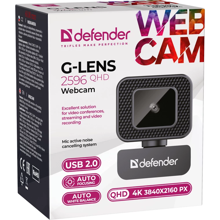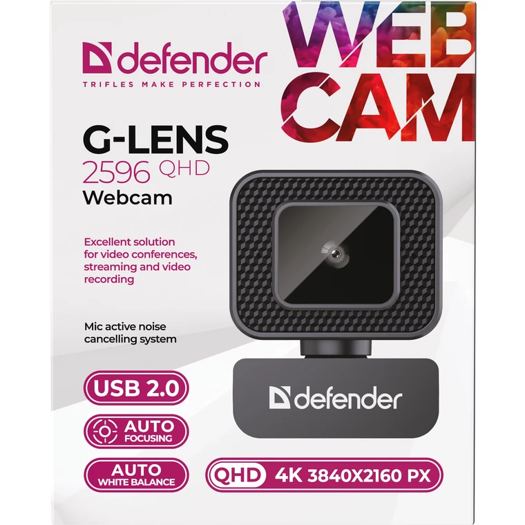 Веб-камера Defender G-lens 2596 QHD это простая по конструкции и удобная в использовании камера с помощью которой вы легко сможете организовать видеосвязь с друзьями или же провести видеоконференцию. Разрешение камеры составляет 3840x2160, что позволяет ей передавать картинку в высоком качестве.