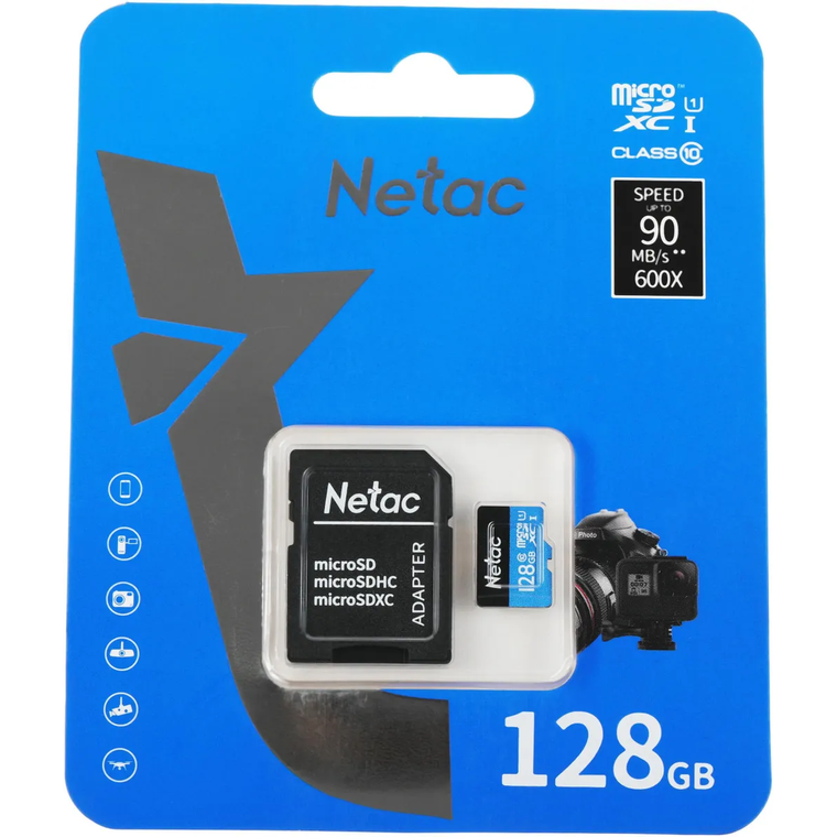 Карта памяти microSDHC (класс 10/UHS-I/U1) 128 Gb Netac P500 + SD адаптер (80MB/s) (NT02P500STN-128G-R). Эта карта расширяет способность памяти многофункциональных мобильных телефонов, цифровых камер, карманных компьютеров и других портативных устройств, поддерживающих данный формат, и класс карт.Идеально подходит для записи любых видов данных. Сохраните больше своих собственных коллекций музыки, видеороликов, кинофильмов, рингтонов, картин и фотографий.