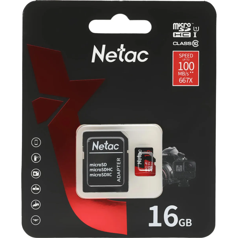 Карта памяти microSDHC (класс 10/UHS-I/U1) 16 Gb Netac P500 Pro + SD адаптер (NT02P500PRO-016G-R). Эта карта расширяет способность памяти многофункциональных мобильных телефонов, цифровых камер, карманных компьютеров и других портативных устройств, поддерживающих данный формат, и класс карт.Идеально подходит для записи любых видов данных. Сохраните больше своих собственных коллекций музыки, видеороликов, кинофильмов, рингтонов, картин и фотографий.