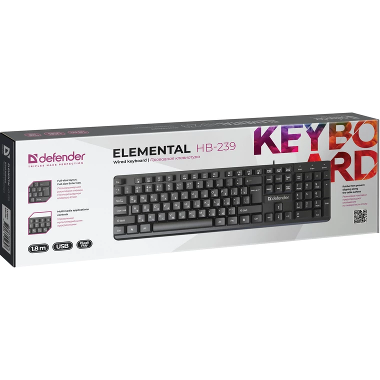 Клавиатура Defender Elemental HB-239 это небольшая по размерам, удобная в ежедневном использовании проводная клавиатура, которая поможет вам более уверенно взаимодействовать с ПК и управлять его работой. Для подключения клавиатуры к компьютеру используется интерфейс USB.