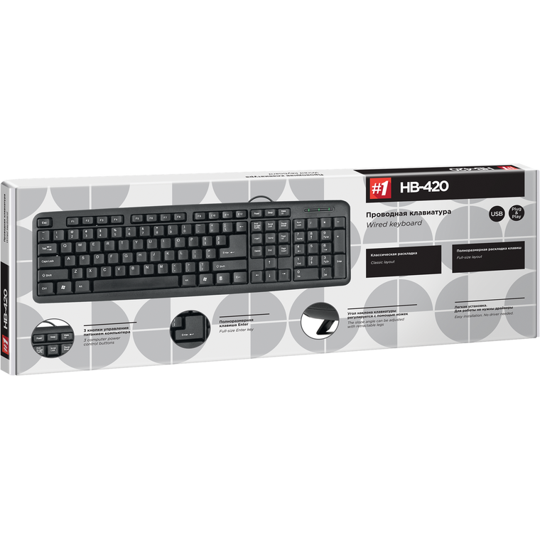 Клавиатура Defender HB-420 это небольшая по размерам, удобная в ежедневном использовании проводная клавиатура, которая поможет вам более уверенно взаимодействовать с ПК и управлять его работой. Для подключения клавиатуры к компьютеру используется интерфейс USB.