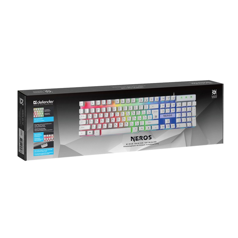 Купить клавиатуру можно на долгие годы. Корпус изготовлен из качественного, прочного пластика и окрашен в белый цвет. Стоит отметить и приятный для глаз дизайн корпуса, благодаря которому данная клавиатура сможет занять достойное место на рабочем столе пользователя. Вы можете купить клавиатуру Defender Neros GK-147 RU по наиболее выгодной стоимости.