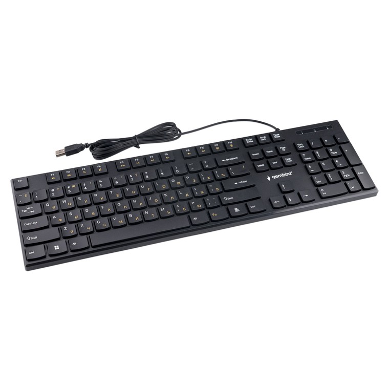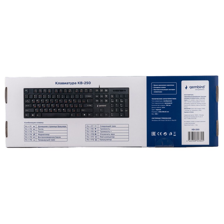 Клавиатура Gembird KB-250 это небольшая по размерам, удобная в ежедневном использовании проводная клавиатура, которая поможет вам более уверенно взаимодействовать с ПК и управлять его работой. Для подключения клавиатуры к компьютеру используется интерфейс USB.