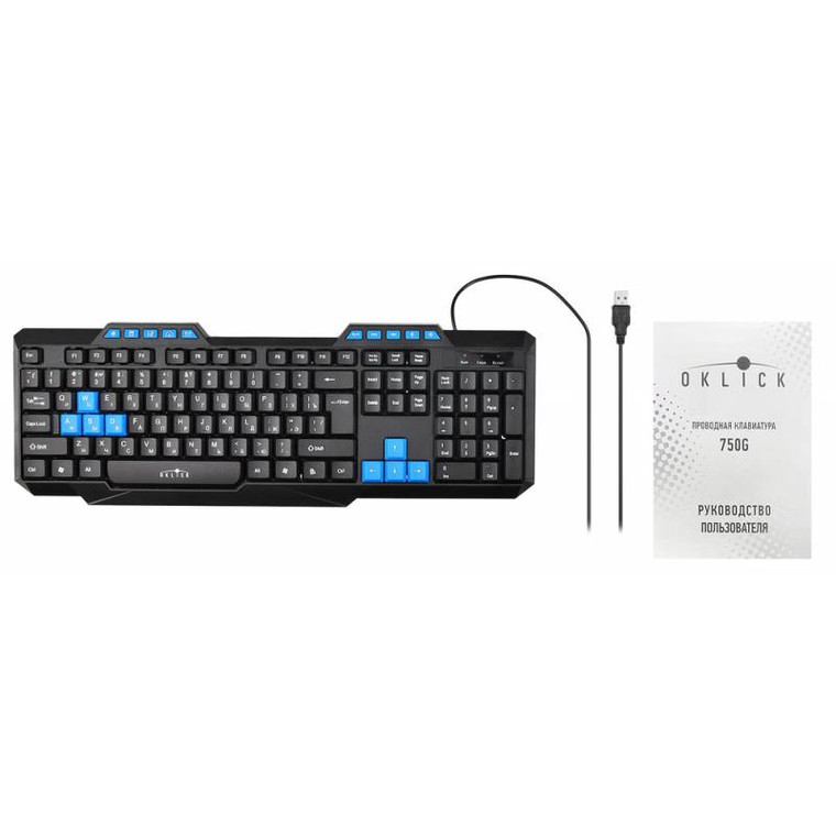 Купить клавиатуру можно на долгие годы. Корпус изготовлен из качественного, прочного пластика и окрашен в черный/синий цвет. Стоит отметить и приятный для глаз дизайн корпуса, благодаря которому данная клавиатура сможет занять достойное место на рабочем столе пользователя. Вы можете купить клавиатуру Oklick 750G по наиболее выгодной стоимости.