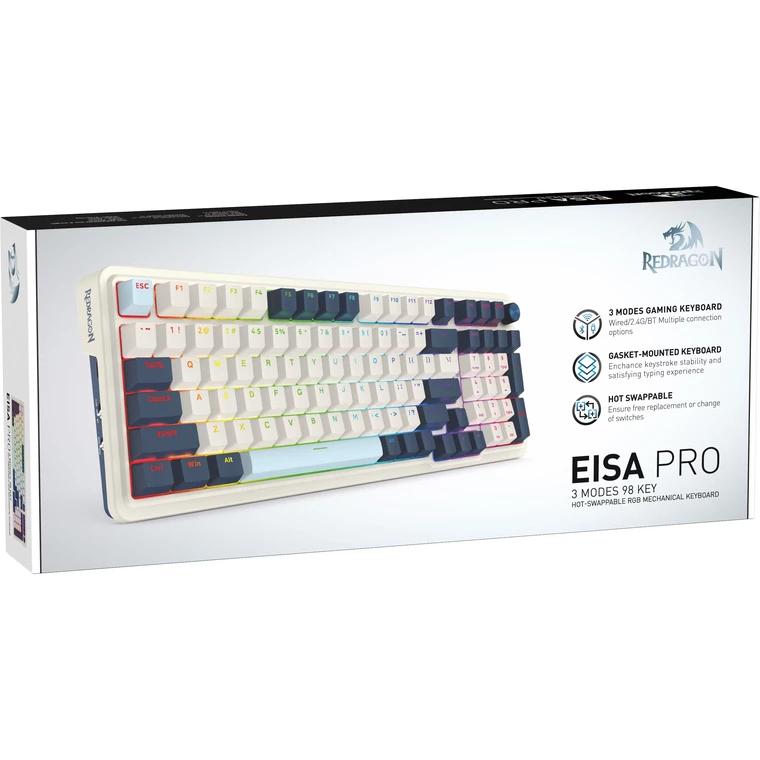 Клавиатура Redragon Eisa Pro это небольшая по размерам, удобная в ежедневном использовании комбинированная клавиатура, которая поможет вам более уверенно взаимодействовать с ПК и управлять его работой. Для подключения клавиатуры к компьютеру используется интерфейс Bluetooth / USB.