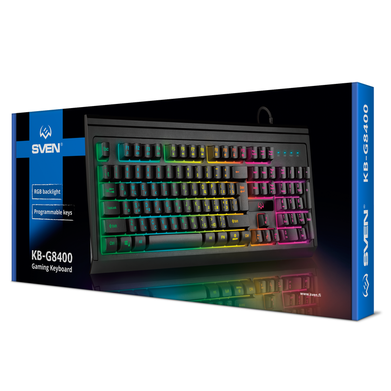 Клавиатура Sven KB-G8400 это небольшая по размерам, удобная в ежедневном использовании проводная клавиатура, которая поможет вам более уверенно взаимодействовать с ПК и управлять его работой. Для подключения клавиатуры к компьютеру используется интерфейс USB.
