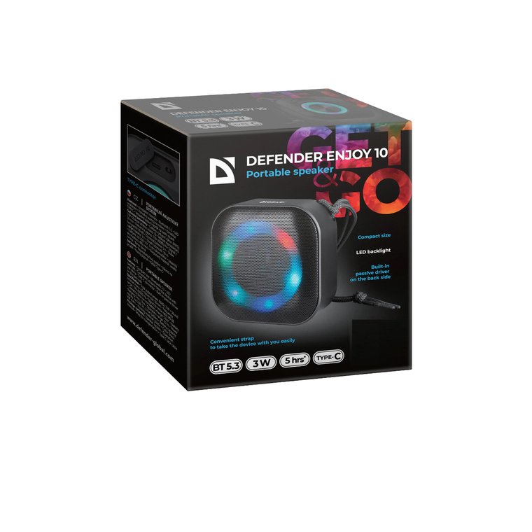 Defender Enjoy 10 это простые и надёжные в использовании портативные колонки от компании Defender. Представленная модель предлагает пользователю небольшие размеры и стильный дизайн, благодаря чему использовать устройство можно в любой обстановке, например, Defender Enjoy 10 можно взять с собой в дорогу.