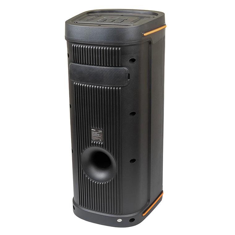 Эта портативная колонка полно преимуществ. Несмотря на небольшие размеры колонок их мощность составляет 80 Вт. При этом девайс работает в режиме моно звучания. Колонки построены по схеме 1.0. Их корпус изготовлен из современных, прочных и качественных материалов и окрашен в черный цвет. Строгий и лаконичный дизайн корпуса позволяет колонкам вписаться в любой интерьер и занять своё место на рабочем столе пользователя. Питание колонок осуществляется от батареи.