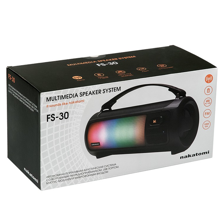 Nakatomi FS-30 это простые и надёжные в использовании портативные колонки от компании Nakatomi. Представленная модель предлагает пользователю небольшие размеры и стильный дизайн, благодаря чему использовать устройство можно в любой обстановке, например, Nakatomi FS-30 можно взять с собой в дорогу.