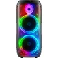 Эта портативная колонка полно преимуществ. Несмотря на небольшие размеры колонок их мощность составляет 120 Вт. При этом девайс работает в режиме моно звучания. Колонки построены по схеме 2.0. Их корпус изготовлен из современных, прочных и качественных материалов и окрашен в черный цвет. Строгий и лаконичный дизайн корпуса позволяет колонкам вписаться в любой интерьер и занять своё место на рабочем столе пользователя. Питание колонок осуществляется от батареи.