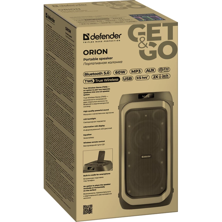 Defender Orion это простые и надёжные в использовании портативные колонки от компании Defender. Представленная модель предлагает пользователю небольшие размеры и стильный дизайн, благодаря чему использовать устройство можно в любой обстановке, например, Defender Orion можно взять с собой в дорогу.
