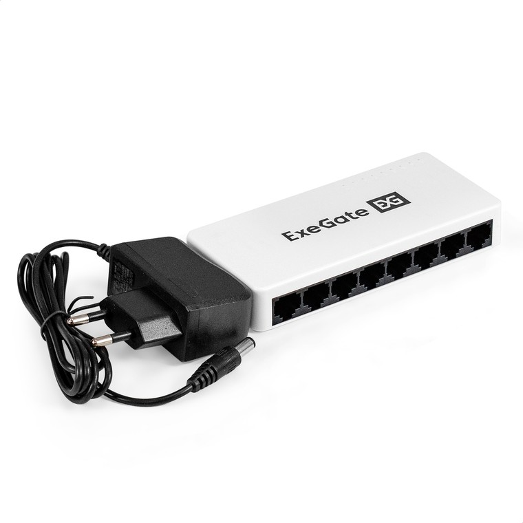 Коммутатор ExeGate EDES-1008C необходим для того, чтобы Вам не приходилось тянуть сразу несколько проводных соединений. Достаточно будет подключить все необходимые Вам провода к ExeGate EDES-1008C, а затем подключить его к роутеру.