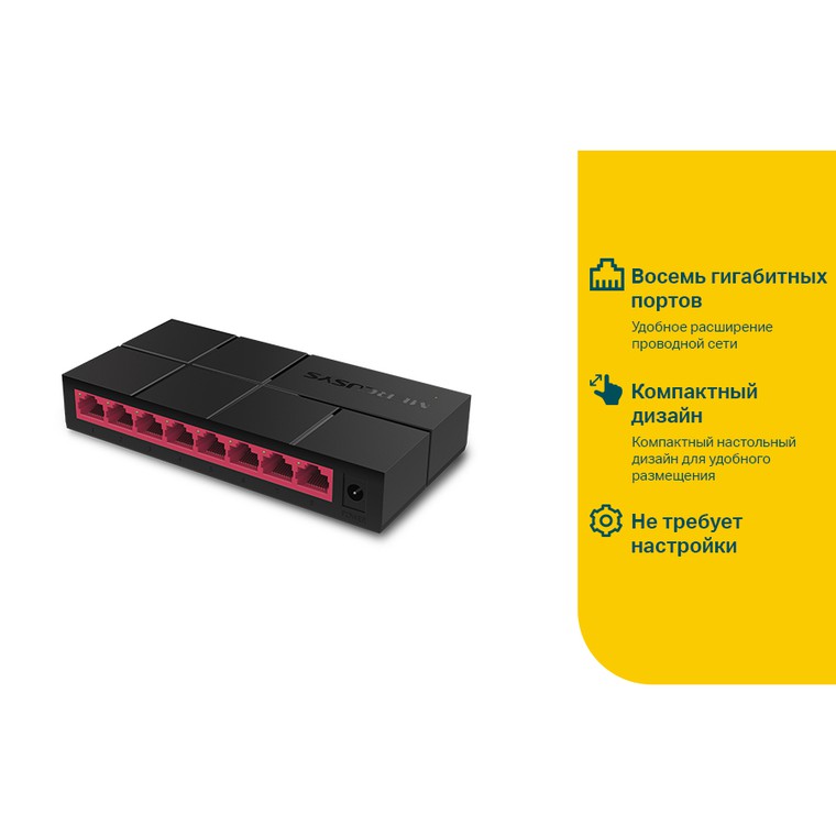 Коммутатор Mercusys MS108G необходим для того, чтобы Вам не приходилось тянуть сразу несколько проводных соединений. Достаточно будет подключить все необходимые Вам провода к Mercusys MS108G, а затем подключить его к роутеру.