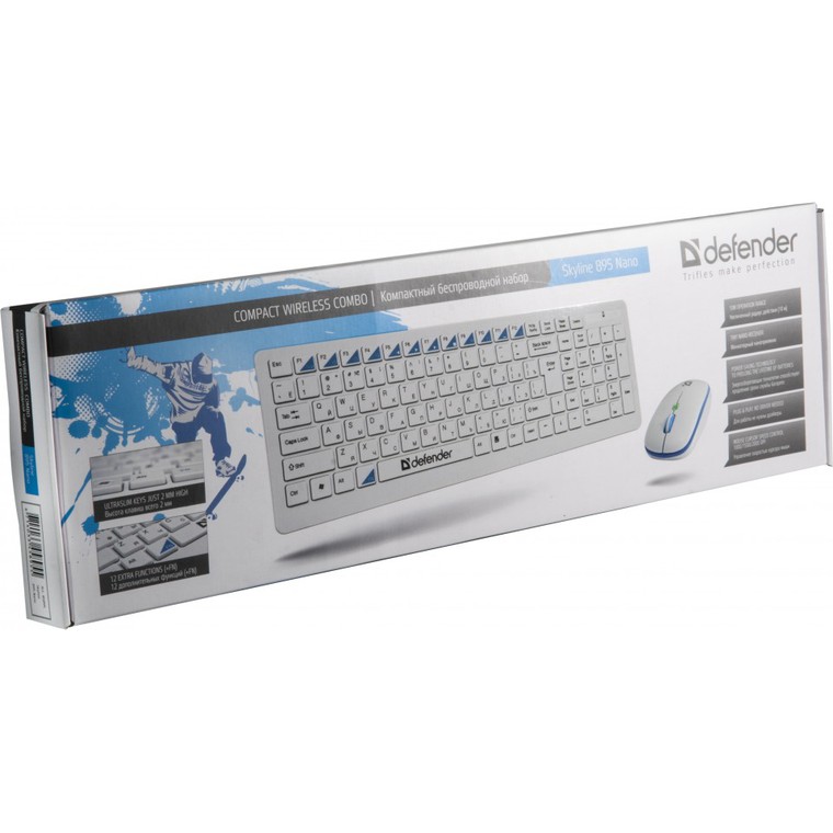 Defender Skyline 895 Nano это комплект, включающий в себя эргономичную клавиатуру и чувствительную мышь. С помощью данного комплекта вы сможете более уверенно управлять работой ПК и оформить рабочий стол в едином стиле. В состав комплекта входит беспроводная