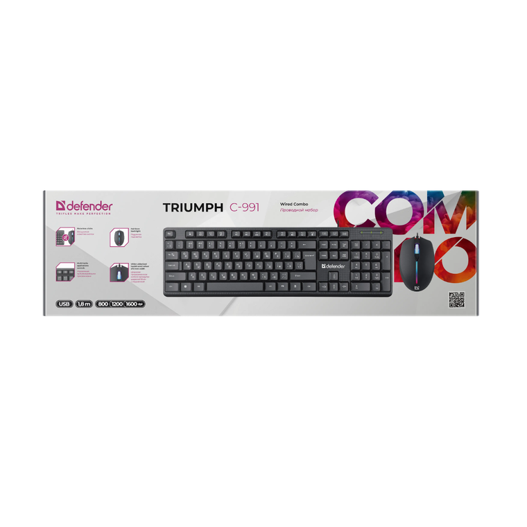 Defender Triumph C-991 silent это комплект, включающий в себя эргономичную клавиатуру и чувствительную мышь. С помощью данного комплекта вы сможете более уверенно управлять работой ПК и оформить рабочий стол в едином стиле. В состав комплекта входит проводная
