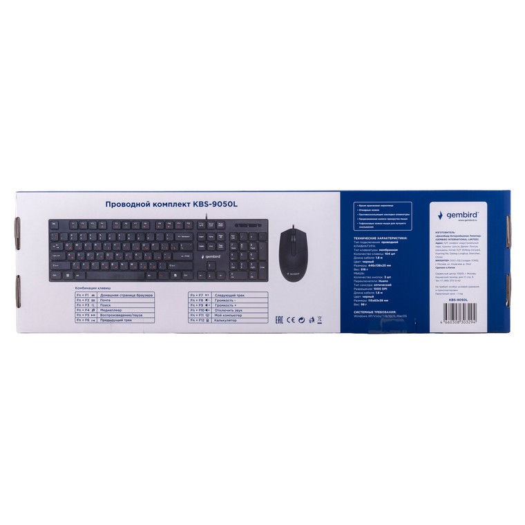 Gembird KBS-9050L это комплект, включающий в себя эргономичную клавиатуру и чувствительную мышь. С помощью данного комплекта вы сможете более уверенно управлять работой ПК и оформить рабочий стол в едином стиле. В состав комплекта входит проводная