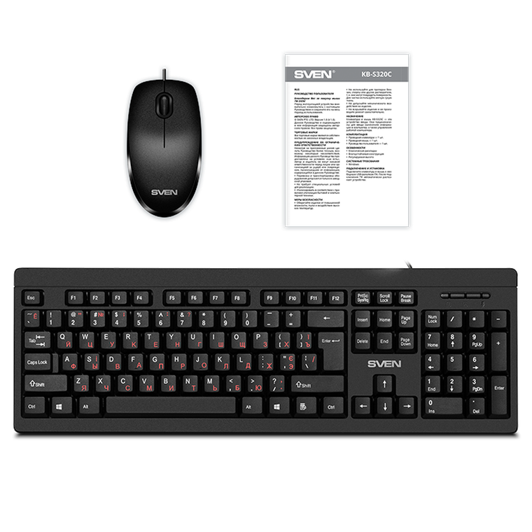 Sven KB-S320C это комплект, включающий в себя эргономичную клавиатуру и чувствительную мышь. С помощью данного комплекта вы сможете более уверенно управлять работой ПК и оформить рабочий стол в едином стиле. В состав комплекта входит проводная
